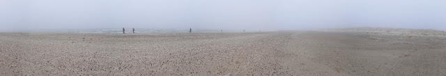 My jsme mohli obdivovat jen mlhu, která se od moře odrážela ze všech stran, a traktor s přívěsem, který po pláži vozil turisty. Nicméně ty porostlé písečné duny byly působivé :)