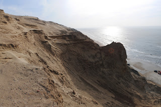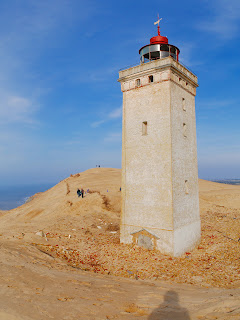 Další bod programu byl ještě působivější. Maják z roku 1900 stojí na vrchu útesu, cca 60m nad hladinou moře, původně stála cca 200m od pobřeží. V průběhu času se ale písek přesouval, moře přibližovalo a před 23m vysokým majákem se tvořily duny, které byly tak velké, že v roce 1968 přestal být maják z moře vidět. Sloužil dále jako muzeum, které ale muselo být v roce 2002 uzavřeno, protože písek už býl všude okolo a ničil budovy. Dneska by mě ani nenapadlo, že maják někdy mohl stát jinde, než uprostřed písečné duny…