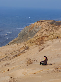 My jsme mohli obdivovat jen mlhu, která se od moře odrážela ze všech stran, a traktor s přívěsem, který po pláži vozil turisty. Nicméně ty porostlé písečné duny byly působivé :)