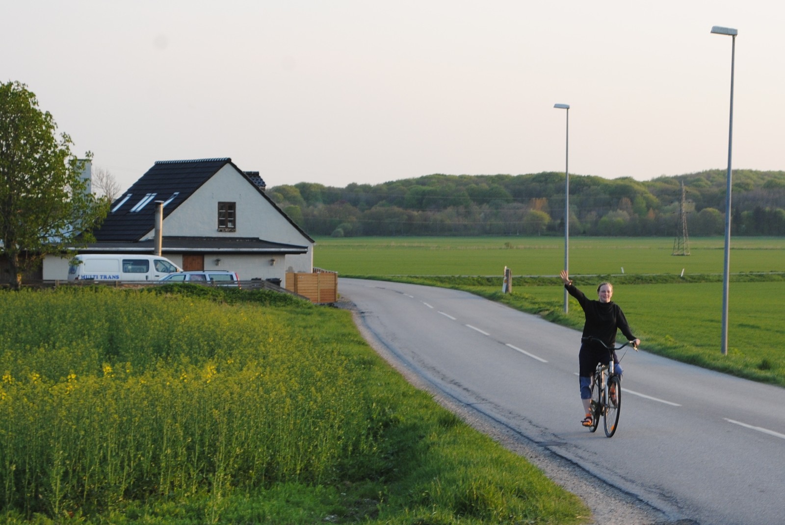 Cesta zpět mě taky trochu zklamala. Jeli jsme po cykloznačce na Aalborg, ale ta vedla celou cestu po asfaltovém pruhu podél hlavní silnice. Asi si budu muset koupit nějakou pořádnou mapu cyklostezek, občas tu jsou takové bezva stezky úplně mimo silnice, ale ještě se mi je nepovedlo najít v žádné mapě na netu…