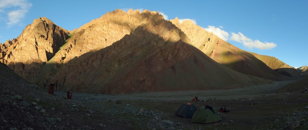 I přes ne-úplně-pozitivní stav Hanky a Jardy vyrážíme do basecampu. Je tam několik desítek stanů, umí tu vařit čaj i nějaká jídla, takže tu v podstatě můžem být jak dlouho chcem. Mají tu dost dobrou politiku používání potoka – v horní části basecampu se z něj bere čistá voda, v dolní se pere prádlo a myje nádobí. Raděj si pro vodu chodíme do přítoku výš. Plán je jasný – zítra odpočinek + aklimatizační výlet a o další půlnoci vyrážíme dobýt vrchol.